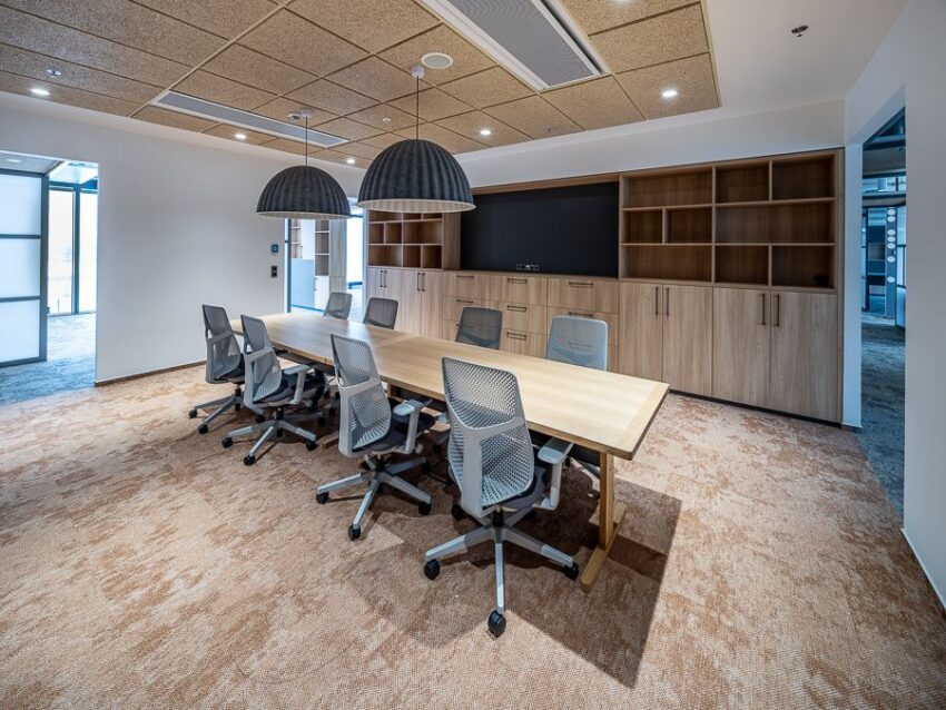 Architektonická koncepce Colliers stavěla na myšlence vizuální permeability, kde otevřený prostor je členěn poloprůhlednými polykarbonátovými stěnami, které jednotlivé zóny oddělují, aniž by je uzavíraly. Každý tým tak může pracovat ve svém prostoru, a přitom zůstává v kontaktu s ostatními. Volný pohyb lidí po patře působí přirozeně, orientace v prostoru je intuitivní. „Významnou součástí návrhu je také řešení akustiky. Zasedací místnosti i vybrané zóny open space jsou opatřeny akustickými stěnovými panely, jejichž umístění vychází z konkrétního využití prostoru. V místech s vyšší mírou komunikace je prostředí přizpůsobeno zvýšené hlukové zátěži, zatímco otevřené pracovní plochy si zachovávají lehkost a vizuální čistotu“ upozorňuje Manuel Pérez, šéf oddělení Design&Build ze společnosti Colliers.